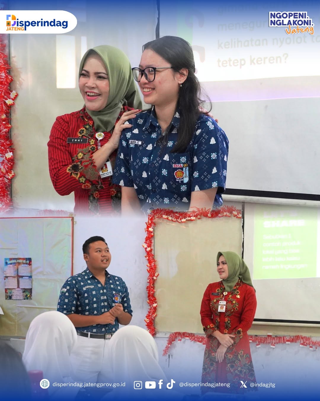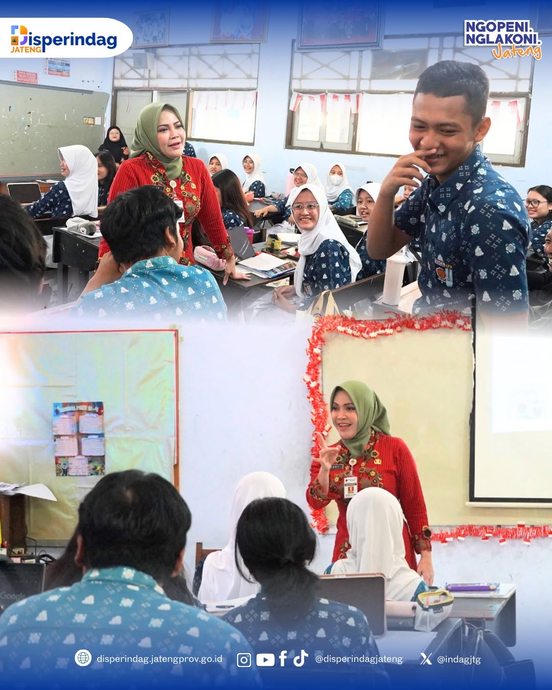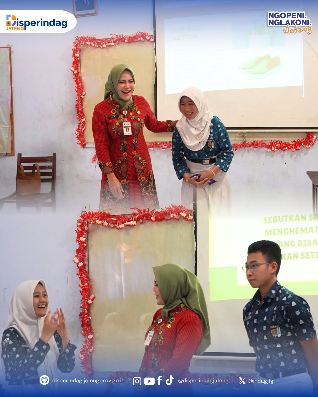 Kepala Dinas Perindustrian dan Perdagangan Prov. Jawa Tengah hadir dalam kegiatan Rengganis Mengajar yang dilaksanakan pada Kamis, 9 Oktober 2025. Dengan mengusung tema “Rengganis Pintar : Generasi Hijau, Generasi Keren”, kegiatan ini bertujuan untuk menyiapkan siswa dengan mentalitas global, kesadaran lingkungan, dan bekal untuk menembus pasar ekspor di masa depan.